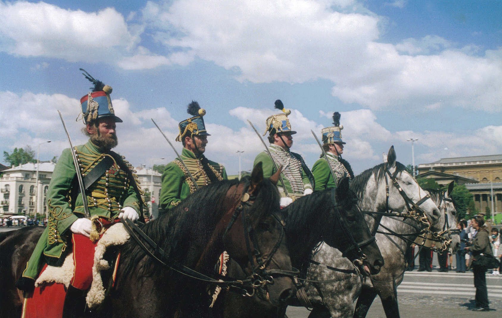 véncsicsó6: Felvonulás a Hősök terén. Itt még együtt a Történelmi Lovas Egyesület képviseletében. Jakab László, Balla Zoltán, Fülöp Tibor Zoltán,